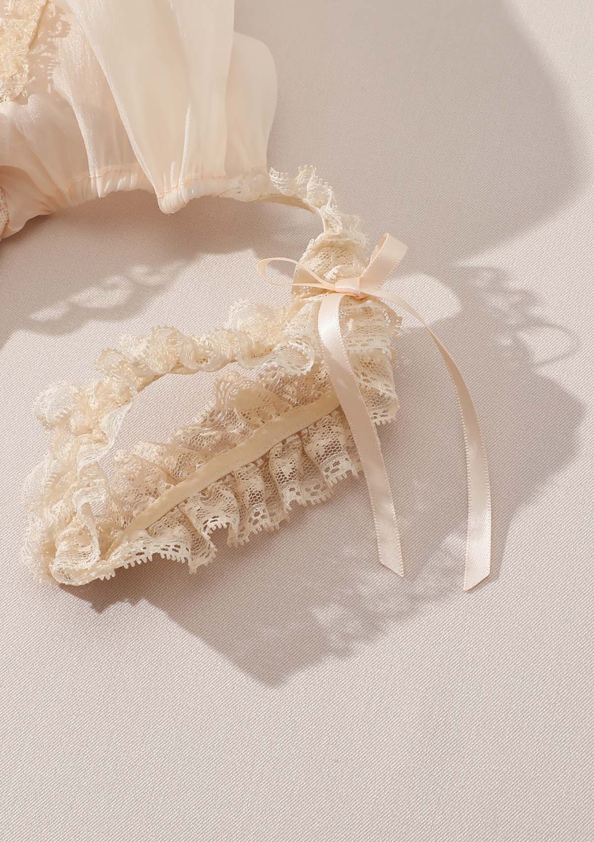 - Refined Details – Custom-dyed lace trims, ruched lace cuffs, and mesh-supported sleeves accentuate the silhouette.